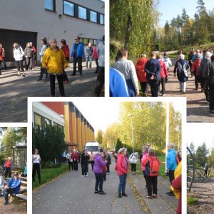 Lounaan jälkeen jakauduimme kahteen eri ryhmään, toiset jäivät ulos ja toiset menivät sisälle. Ulkona Jari johdatti ryhmän luontopolulle, jonka varrella oli sekä luontoon että liikuntaan liittyviä kysymyksiä. Lisäksi luontopolulla Jari kyseli, kuka muistaa mitä missäkin on ollut aiemmin ja se viritti monin paikoin vilkasta keskustelua, koska ryhmässä oli paljon sellaisia henkilöitä, jotka ovat käyneet Kisakeskuksessa jo sen alkumetreiltä vuodesta 1958 alkaen. Sisällä Nina veti ChiBall -harjoituksen, joka on kokonaisvaltainen harjoitusohjelma ja se perustuu perinteiseen kiinalaiseen lääketieteeseen sekä yhdistää ainutlaatuisella tavalla väri- ja aromaterapian. Liikkeissä seurataan vuodenaikojen vaihtelua, mikä auttaa nauttimaan matkasta kohti harmoniaa, tasapainoa ja hyvinvointia.