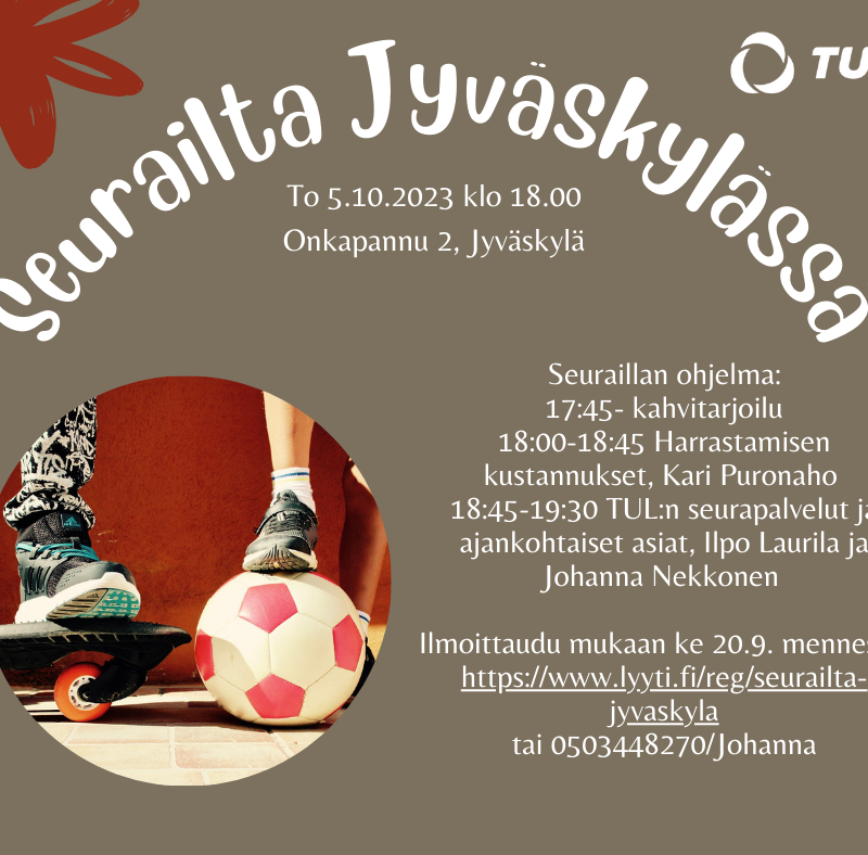 TUL järjestää Järvi-Suomen jäsenseuroille seuraillan Jyväskylässä.