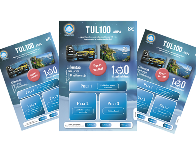 Kerrytä seurasi tai joukkueesi kassaa TUL100-arpojen avulla. Arvan myyntipalkkio on jopa 4 euroa arpaa kohden.