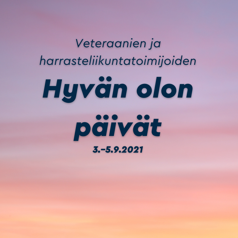 TUL:n veteraanien ja seurojen harrasteliikuntatoimijoiden yhteiset Hyvän olon päivät järjestetään Rajaniemen lomakeskuksessa 3.–5.9.2021. Viikonloppu koostuu yhdessä olosta, liikunnallisista aktiviteeteista, uuden oppimisesta ja rentoutumisesta.