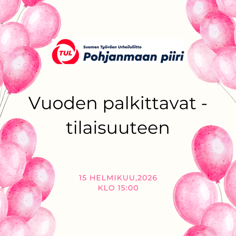 TUL:n Pohjanmaan piiri palkitsee menestyksekkäimmät urheilijat ja toimijat Vaasassa JHL:n tiloissa sunnuntaina 15.2. klo 15:00. Tilaisuudessa palkitaan vuoden urheilija, nuoriurheilija, veteraaniurheilija, seuratoimija, seura ja Elämäntyö -palkinto.