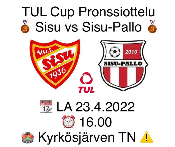 Lauantaina 23.4. klo 16:00 otetaan isovelistä mittaa kun Seinäjoen Sisu ja Sisu-Pallo kohtaavat TUL cupin pronssiottelussa.